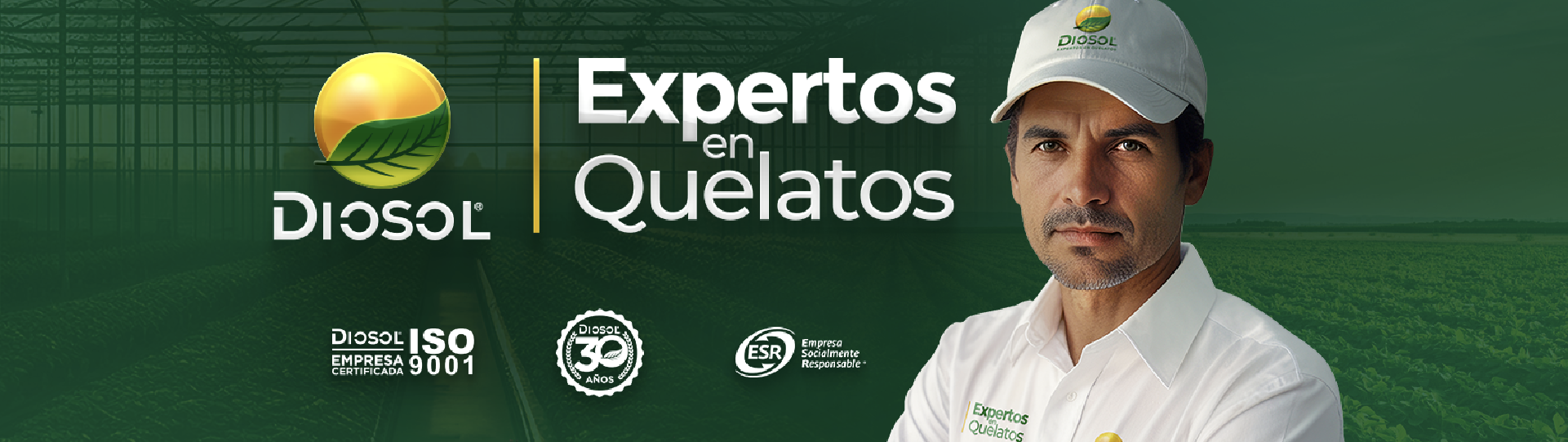 En la empresa Diosol Chemical S.A. de C.V. creamos soluciones en nutrición vegetal. Nos comprometemos a entregar a nuestros clientes un trato personalizado y el cumplimiento pleno de sus requisitos y expectativas, mediante la implantación de un sistema de gestión de calidad y mejora continua acorde a la norma ISO 9001 vigente, con personal innovador y tecnología de vanguardia. Mediante la certificación ISO y el distintivo ESR, Diosol manifiesta su interés en ofrecer productos de la más alta calidad acompañado siempre de un trato profesional y amable al cliente por parte de los colaboradores, además de guiarnos por un sistema de creencias y valores: